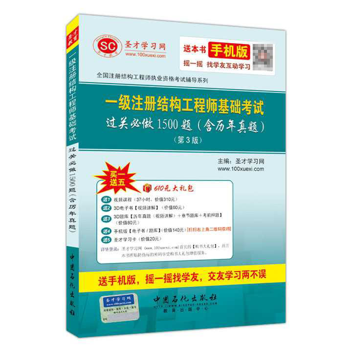 圣才學習網(www.ganymede1.com)提供注冊結構工程師等各種工程類資格考試輔導方案【網絡課程、3D電子書、3D題庫等】(詳細介紹參見本書書前彩頁)。購書享受大禮包增值服務【310元網授班+140元3D電子書(題庫)+140元手機版電子書(題庫)+20元圣才學習卡】。掃一掃本書封面的二維碼,可免費下載本書手機版;搖一搖本書手機版,可找到所有學習本書的學友,交友學習兩不誤。