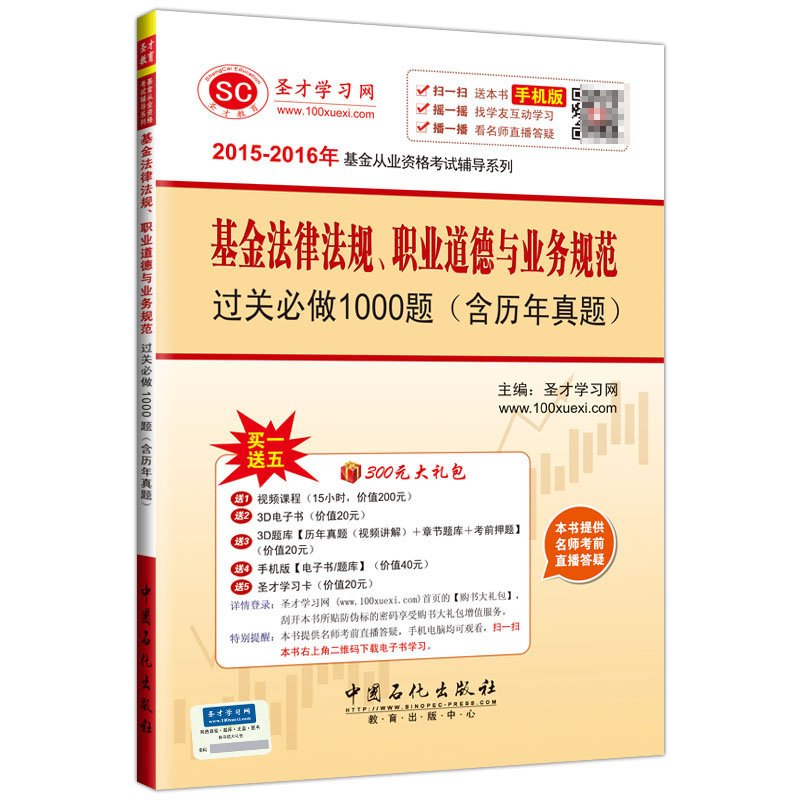 基金從業資格考試輔導系列新書上市啦,包含《證券投資基金基礎知識過關必做1000題(含歷年真題)》和《基金法律法規、職業道德與業務規范過關必做1000題(含歷年真題)》,任君選購。購書就送超值大禮包(高清視頻課程、3D電子書、3D題庫、手機版電子書題庫、圣才學習卡),更有考前名師直播答疑,歡迎廣大讀者考生訂購。
